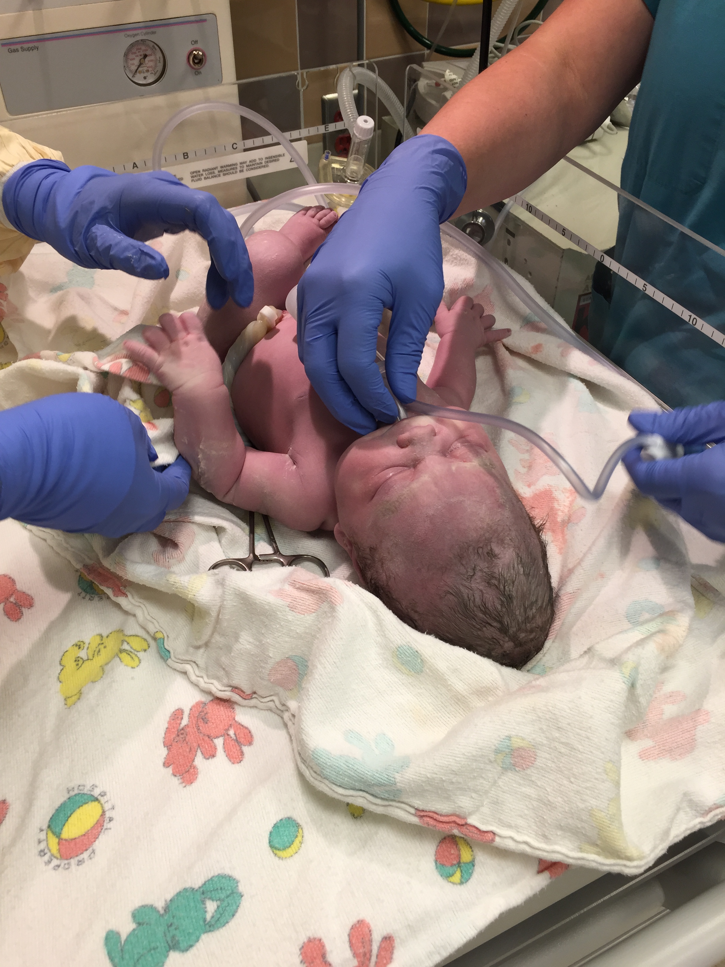 In about 10 minutes, the baby was out! Such a relief to see both my ladies are through the worst of it. And the baby? She’s healthy! Not too pretty though: